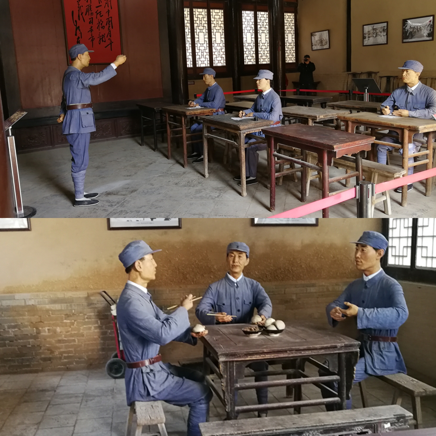 在大家游完龙泉公社还未尽兴时,司机便催促大家上车要前往下一目的地了,那就是安吴青训班。安吴青训班是在中共中央青年工作委员会领导下,以西北青年救国联合会的名义,在当时的国民党统治区陕西省泾阳县安吴堡举办的培训青年干部的重要场所。它是抗日青年的旗帜、革命青年的熔炉、中国青运史上的丰碑!在2016年12月,安吴青训班革命旧址被列入全国红色旅游经典景区名录。 安吴青训班不仅是旅游景点,还是学习革命精神的地方,大家一边参观青训班里的革命文物,一边听讲解员讲解发生在这些文物身上的故事。大家被这些故事吸引,也被革命前辈的精神所震撼,收起了刚才的笑容,静静的跟随着讲解员,听着那段岁月发生的故事。
