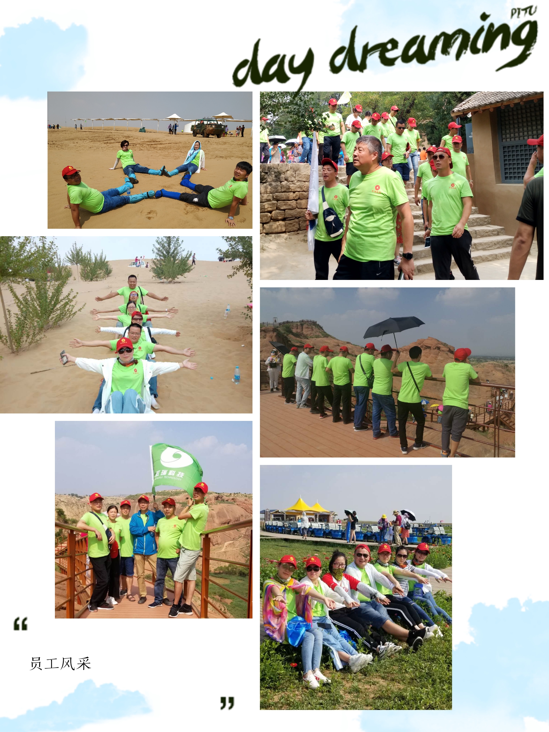 2018“盛夏避暑 放飞心情”全员团建活动报道 2018-8-10 2018年8月4日至7日,公司组织了全员赴陕北、内蒙四日游。一路上,大家热情高涨、欢歌笑语;旅途中,领略了美景,享受了美食,感受了革命情怀,解除了疲劳,尽兴游玩之余,深切感受到来自公司大家庭的温暖。 公司始终坚持以人为本,视员工为公司发展的核心力量,组织外出旅游活动是公司对员工努力工作的充分肯定,也是对员工的深切关怀。 从神奇的丹霞地貌到辽阔的蒙古草原,由一望无垠的沙漠到革命圣地延安,不仅能够让员工在工作之余领略自然美景,感受革命情怀,而且能极大的调动员工的工作积极性,增强企业的凝聚力及团队合作意识,为公司部门间联络感情提供了交流平台,员工们在放松身心、陶冶情操之余,能够以更加饱满的热情投入到工作中去,为公司持续快速发展贡献自己的力量。