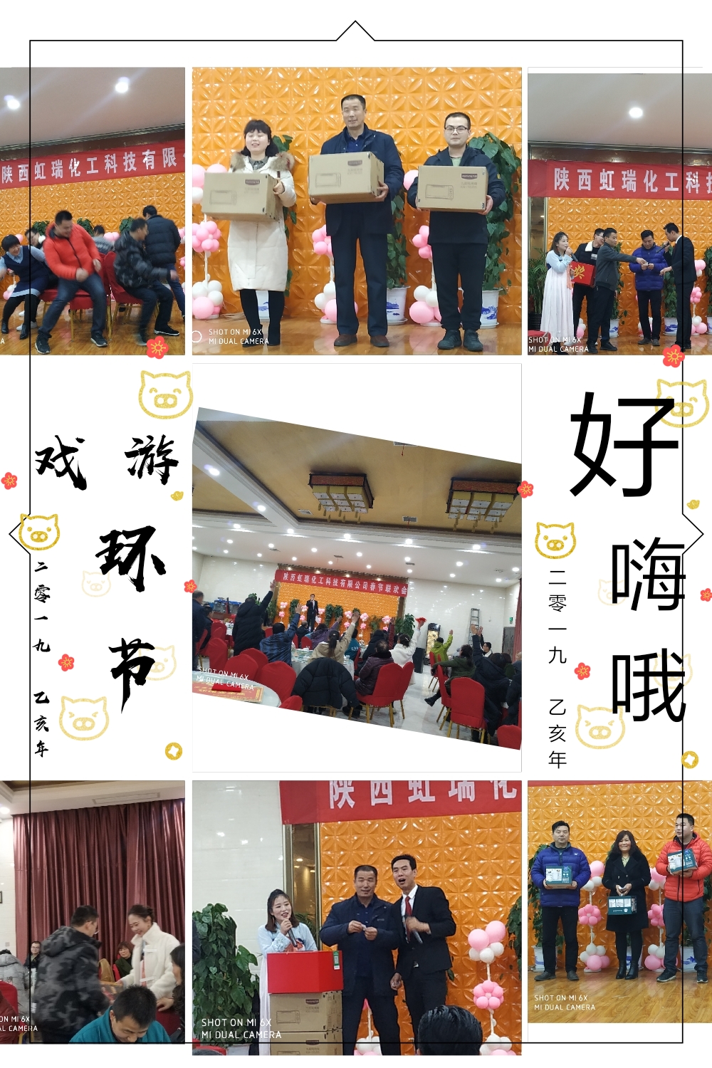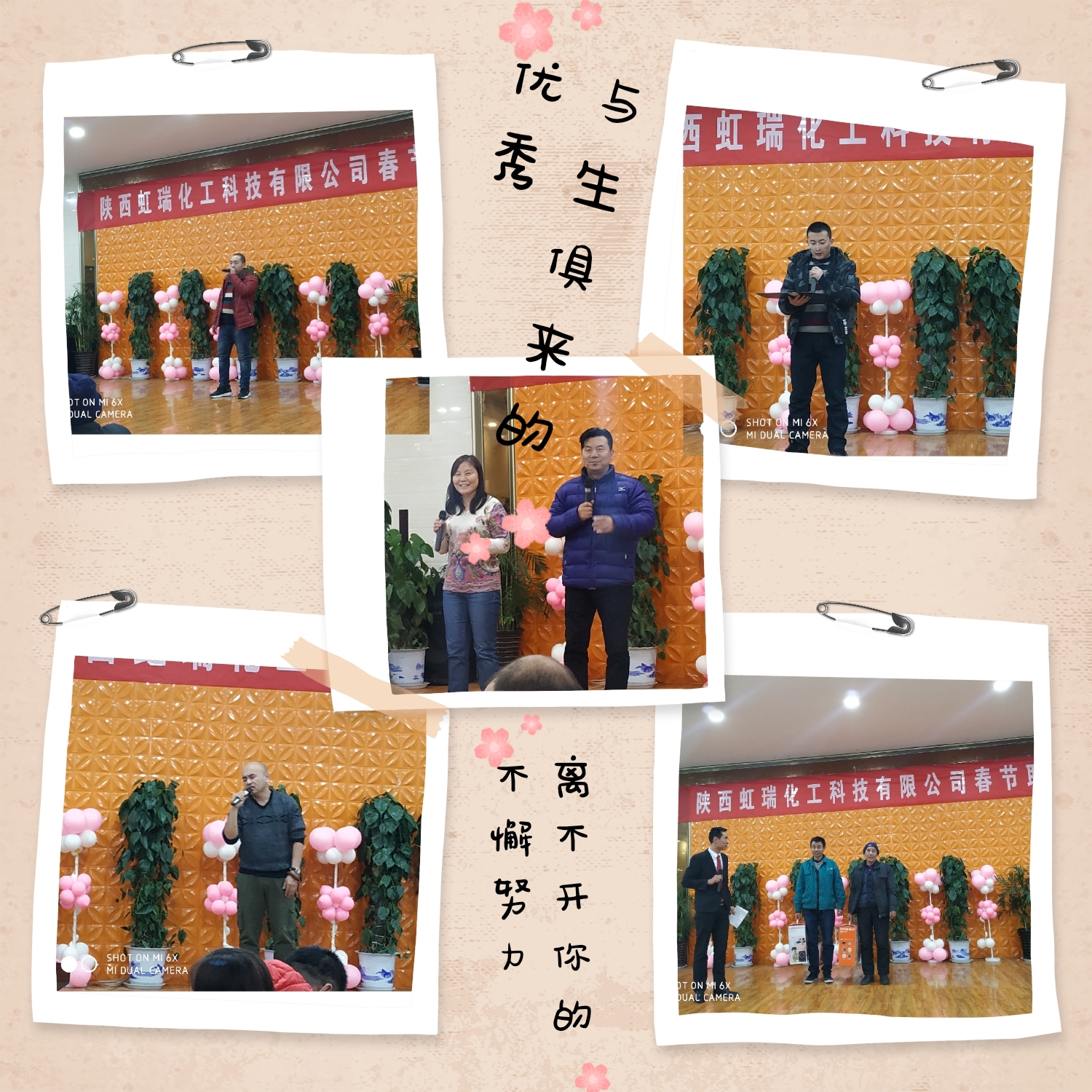 此次联欢会节目精彩纷呈、让人目不暇接。绚丽的舞蹈、优美的女声独唱、优雅的男生独唱,还有小品等节目,五彩缤纷, 精彩纷呈,中间还穿插了抽奖环节,随着三等奖、二等奖、一等奖的抽取,不断掀起年会的高潮。年会不仅给大家带来了欢 声笑语,同时也让同事之间彼此的心更加贴近。公司领导与员工亲切互动、激动人心的抽奖活动,让歌声、掌声、欢呼声一 直在会场上荡漾。整场联欢会高潮迭起,呈现的虹瑞大家庭的欢乐祥和。
