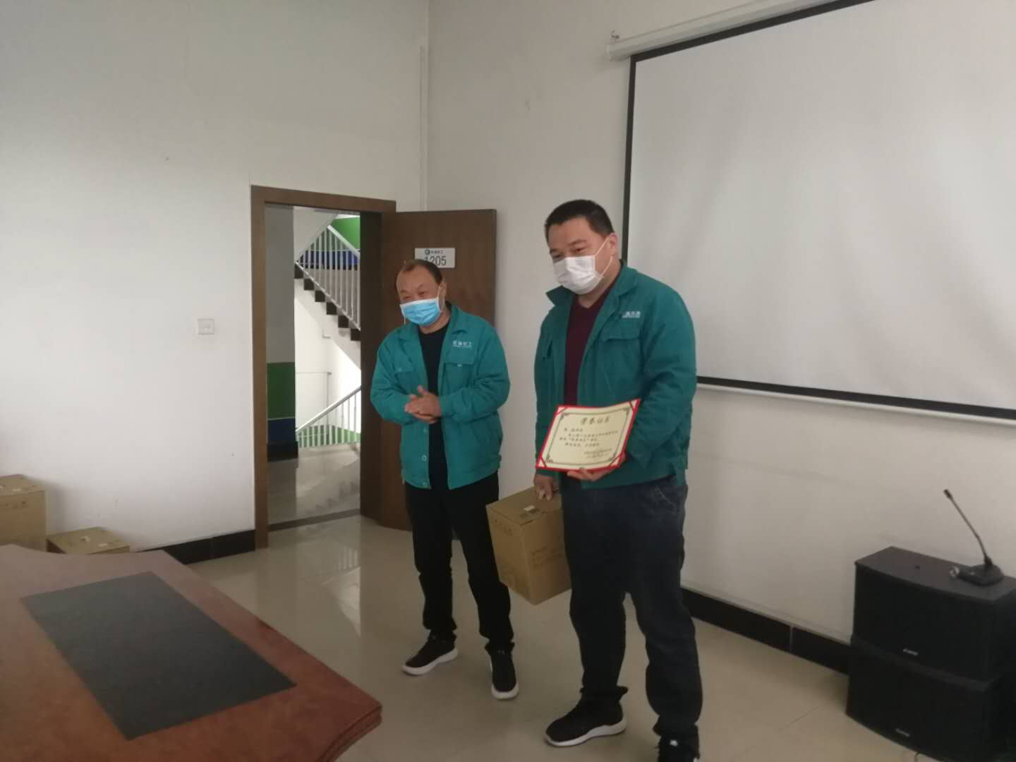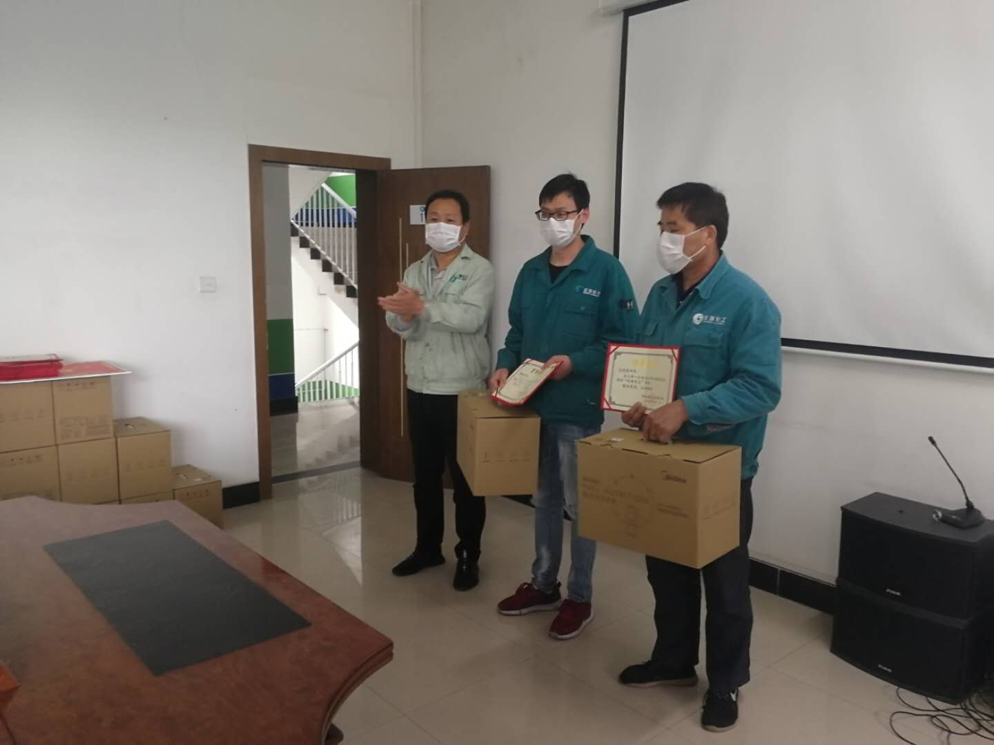 防疫防控突出贡献奖:疫情期间,冲锋在前,舍小家为大家,不畏艰辛、 不畏风险,扎实开展疫情防控工作,为复工复产打下坚实基础。 工业部:范明强 行政部:张春峰 技术部:宋建斐