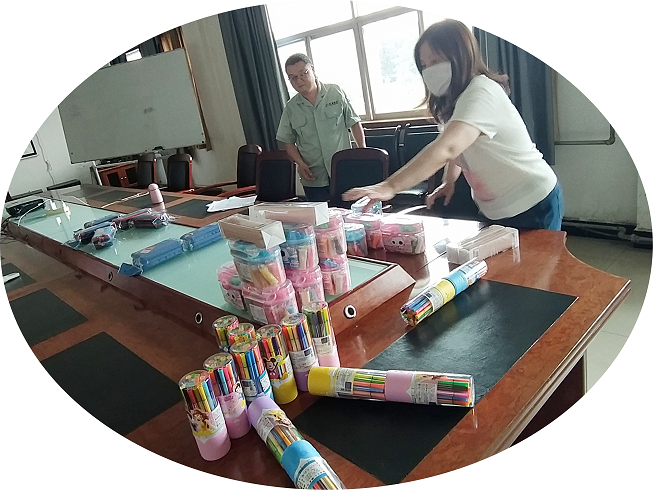 童敏霞同志、张春锋同志为员工子女发放儿童节礼品。